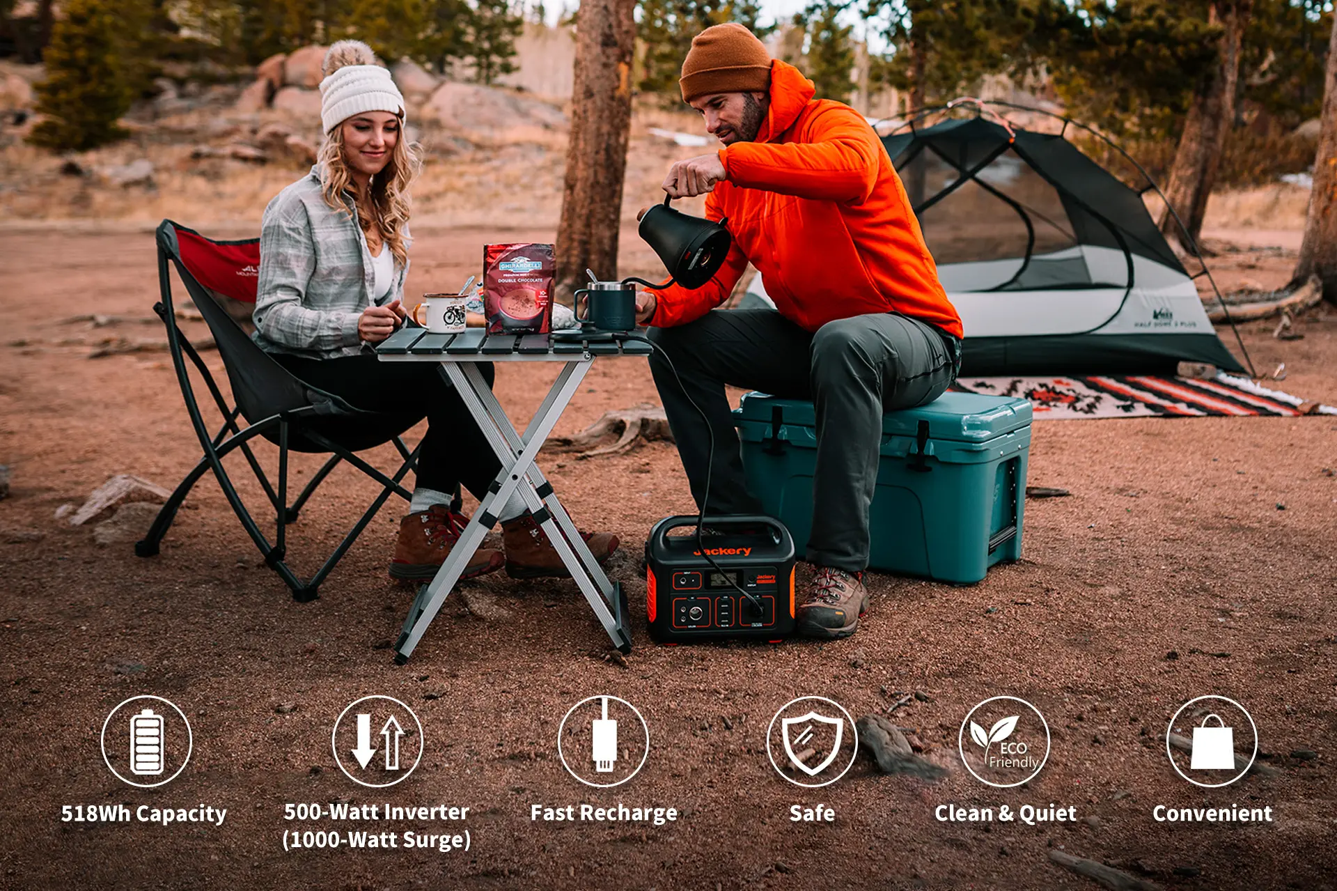 Jackery Explorer 500 Portable Power Station features 1 * AC outlet, 2 * DC ports, 1 * car port, and 3 * USB-A ports to charge low to high-power appliances, including air pumps, CPAP machines, TV, mini-refrigerators and more. Its compact size and lightweight design make the power station ideal for road trips and RV camping.
